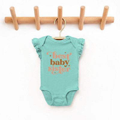 The perfect flutter sleeve graphic bodysuit for your perfect baby! These flutter sleeve bodysuits have 3 snap closure and double needle ribbed binding on neck, shoulders, sleeves, and leg openings. Machine wash cold, inside out. Air dry or tumble dry low.