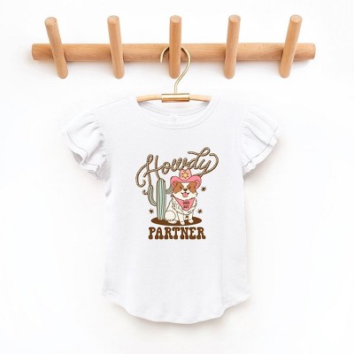 Looking for a cute tee for your daughter? We have the perfect flutter sleeve graphic tee.