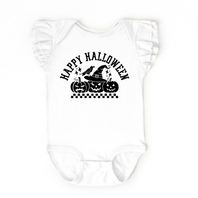Product Name: The Juniper Shop Happy Halloween Arch Distressed Long Sleeve Bodysuit - 6M - White