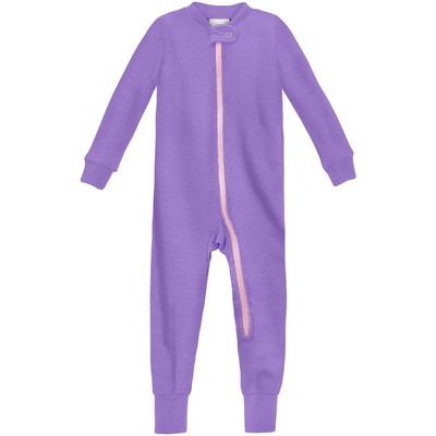 - 3 snap closure. Double needle ribbed binding on neck, shoulders, sleeves and leg openings.