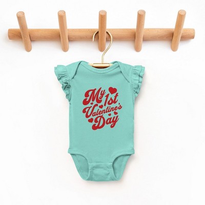 Product Name: The Juniper Shop Hugs And Kisses Baby Flutter Sleeve Bodysuit - 12 Month - Seafoam