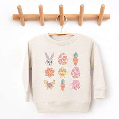 Make a bold statement with this 'I'm Just Here For the Chicks Checkered' design. Featuring a vibrant checkered pattern and a sassy phrase, this design is perfect for those with a sense of humor. If you love a fun and quirky style, this design is sure to turn heads. Stand out from the crowd and show off your unique personality with this cool and dynamic print on demand design. Perfect for any Easter celebration! Keep your little one cozy and stylish in this high-quality toddler sweatshirt. Made from soft fleece, this comfortable and long-lasting sweatshirt features fun graphic designs that are on-trend and perfect for any playful toddler.