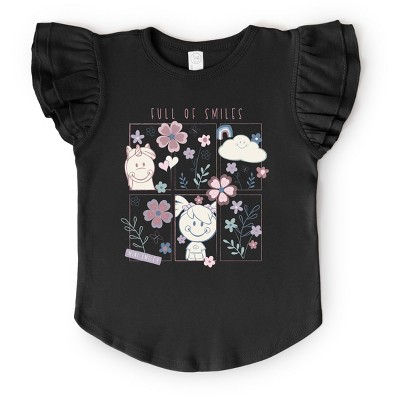 Product Name: The Juniper Shop Mini Smiley Happy Amongst The Flowers Flutter Sleeve Tee - 5/6T - Black