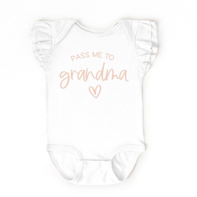 Show your love for Grandma with this adorable 'Pass Me To Grandma' design. Perfect for family gatherings or just because, this design is sure to bring smiles wherever you go. The playful font and cute graphics make it a fun and lighthearted addition to any product. Whether you're looking for a funny gift for Grandma or just want to show off your family pride, this design is a perfect choice. Spread the love and let everyone know who holds a special place in your heart with 'Pass Me To Grandma' print. Keep your little one stylish and cozy with our baby long sleeve bodysuit. Featuring fun and unique graphics, this trendy piece is made with high quality materials for ultimate comfort. The snap closure makes changing a breeze.