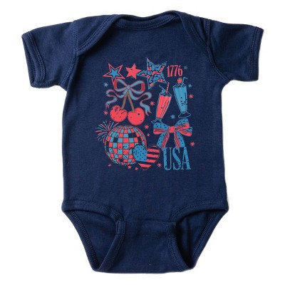 The Juniper Shop Patriotic Dog Ice Cream Baby Short Sleeve Bodysuit - 6M - Light Blue