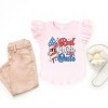 Celebrate in style with the Red White and Cute Firework design. This festive print features a vibrant display of red, white, and blue fireworks bursting across the design. Perfect for showing off your patriotic spirit on Independence Day or any summer holiday. The dynamic design is full of energy and excitement, making it a fun and eye-catching choice for any celebration. Whether you're headed to a BBQ, fireworks show, or parade, this design is sure to make a statement and show off your American pride. Get ready to light up the night with this dynamic and festive print! Dress your little one in the cutest Flutter Sleeve Toddler Tee! Featuring fun and bright colors, this adorable graphic tee is perfect for little girls. Made with high-quality materials, it's the perfect addition to any stylish wardrobe.