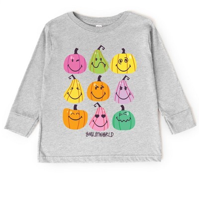 Get into the Halloween spirit with this fun and festive design featuring a smiling pumpkin face on a checkered background. Perfect for adding a touch of spooky charm to your wardrobe or home decor, this design is sure to bring a smile to your face this season. Whether you're trick-or-treating or just feeling festive, this SmileyWorld Pumpkin Face Checkered design is a playful and stylish choice. Introducing our Toddler Long Sleeve Graphic Tee, the perfect blend of high quality and trendy style. Made with comfortable, soft fabric and featuring fun graphics, this shirt is sure to become a favorite in your little one's wardrobe.