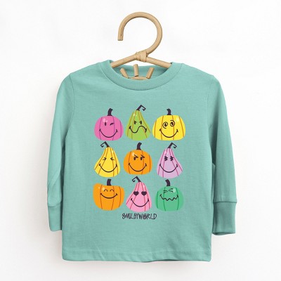 Product Name: The Juniper Shop SmileyWorld Pumpkin Face Checkered Toddler Long Sleeve Tee - 3T - Seafoam