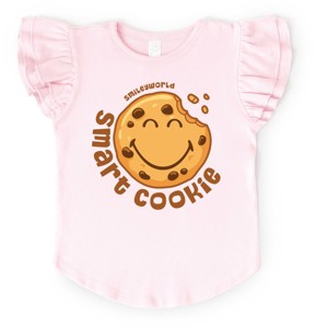 Spread positivity and joy with the SmileyWorld Smart Cookie Circle design. This fun and bright print features a cute smiley face shaped like a cookie. The design exudes a playful and happy vibe, perfect for those who want to add a touch of cheer to their daily lives. Whether you're a fan of cookies or just enjoy spreading smiles, this design is sure to bring a sense of happiness wherever you go. Embrace the fun and positivity of SmileyWorld with this delightful Smart Cookie Circle print. Dress your little one in the cutest Flutter Sleeve Toddler Tee! Featuring fun and bright colors, this adorable graphic tee is perfect for little girls. Made with high-quality materials, it's the perfect addition to any stylish wardrobe.