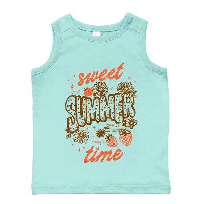 Embrace the carefree vibes of summer with the Sweet Summer Time Block Distressed design. Featuring a bold and vibrant block pattern that adds a modern touch to your wardrobe. The distressed elements give it a textured and worn-in look, perfect for casual outings or beach days. This design captures the essence of the season with its fun and colorful aesthetic. Whether you're strolling through the farmers market or enjoying a picnic in the park, this design will bring a touch of summer to any outfit. Get your little one ready for summer fun with this Toddler Tank! Featuring a graphic print in fun colors, this high-quality tank top is perfect for all their summer adventures. The unisex fit makes it easy to mix and match with other cute casual wear.