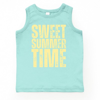 Celebrate the sweetness of summer with this vibrant and eye-catching 'Sweet Summer Time Block Distressed' print. The design features a unique block layout with a distressed effect, giving it a retro and vintage feel. Perfect for those sunny beach days or casual outings, this design exudes a colorful and fun vibe that captures the essence of a laid-back summer. Whether you're soaking up the sun or enjoying a leisurely day out, this print is sure to add a cool and relaxed touch to your outfit. Embrace the summer spirit with this stylish and dynamic design. Stay cool and stylish this summer with our trendy youth graphic tank top. Made with high-quality materials for maximum comfort and durability. Perfect for lounging by the pool or hitting the beach. Stand out in style with this must-have summer essential.
