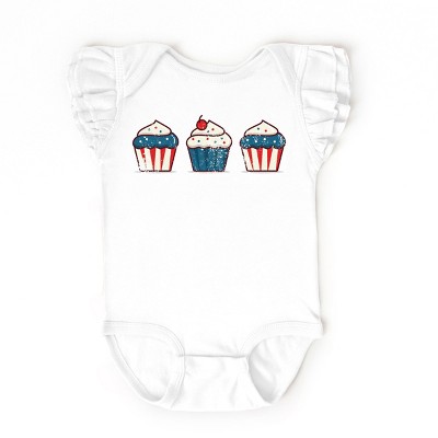 The Juniper Shop USA Flag Coquette Flutter Sleeve Bodysuit - 12M - Ballerina
