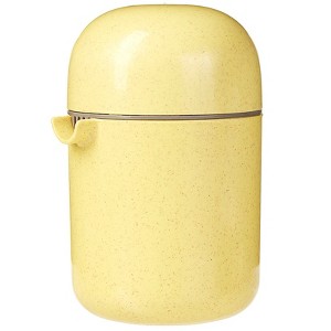 Juice, strain and store with this 2-Pc. Citrus Juicer with Storage Container. There's no better juice than fresh-squeezed, and this set makes it simpler than ever. Crafted from eco-friendly materials, it is a completely integrated system. Remove the cap, and you'll find the reamer and a seed and pulp strainer. The juice falls right into the 14 oz. storage section, which includes an integrated spout for serving. Fully assembled set can go straight into the fridge. Made from: Polypropylene and straw Measurements: 4"W x 3-1/3"D x 5-1/2"H Storage, 14 oz. Notes: Dishwasher safe