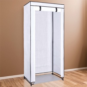 28" Portable Wardrobe is the perfect solution for dorms and other small living spaces. It's also great for temporary organization, too. The frame collapses for storage when not in use or for easy moving. Zippered door keeps everything dust free. Made of: Non-woven polypropylene and plastic Measurements: 28"W x 18"D x 58"H Notes: Some assembly required; assembly hardware included