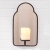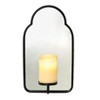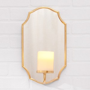 Mirrored Architectural LED Wall Sconce is a touch of elegance for any room. The included LED candle sits in the center of the piece, while the mirrored surface reflects its light into your living space. Made of: Metal, mirror, wax, MDF and plastic Measurements: 8-1/2"W x 4-1/8"D x 15"H Notes: Requires 2 "AA" batteries Hanging hardware included