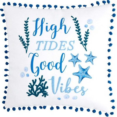 Brighten up your home with Beach-Themed Embroidered Accent Pillows. High-quality stitched designs feature seashells, starfish and coral. They are the perfect accent for any coastal decor. Made of: Polyester Measurements: ,High Tides and Happy Place, 18" sq.,Seashell, 20"W x 12"L Notes: Imported