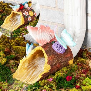 Decorate your yard and protect your home's foundation when you use a Bird or Butterfly Down Spout Cover. Intricate design has all the charm and color of nature. Place it at the opening of a downspot, and it will help direct the flow of water when it rains. Made of: Resin Measurments: Approx. 8-3/8"W x 6-1/2"D x 7-1/4"H