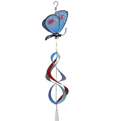 Give your porch, deck or tree some new life with at Butterfly Wind Spinner. Watch as the breeze sends the hanging spirals twirling in a flash of color. Arrives ready to hang. Made of: Metal and glass Measurements: 5"W x 5-1/2”D x 30"H