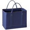 The Chic File Organizer is a super-stylish way to keep your important documents sorted. Really helpful organization for remote and hybrid workers. Allows convenient organization and portability. With sturdy sides and base, its exterior features a faux leather material with white topstitching. Has removable metal rails to hang your own file folders on. Double handles make carrying easy. Made from: 14"W x 9"D x 10-1/2"H, with a 6" strap drop Measurements: Polyurethane, paperboard and polyester Notes: Imported