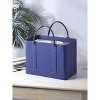 i found a file tote at a store a few years back and decided i needed another one to keep things organized. this was the most affordable option i found on the internet. it’s not bad at all, it looks decently made and came wrapped in plastic. i do not like hanging folders so i chose not to use the bars that came inside. it got full quickly but i do have a lot of papers. i wish the handles had a slightly bigger drop because they are too short to comfortably carry it as a bag. i will have to order a couple more for the rest of my papers. i really like this system. my other idea was a filing cabinet but they look so office-y and i don’t know where i would put it. these fit under the bottom shelf in my hall closet and are easy to access.
