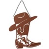 Designed to bring a touch of the Wild West to any room, Western Icon Wall Decor offers more than just aesthetic appeal-it tells a story. Choose from 4 unique styles: Hat, Horse, Cross, or Boot. Each piece is crafted with an artistic flair that evokes the spirit of wide-open spaces and frontier adventures. Ready to hang, these decor items seamlessly enhance your living space, whether you're looking to add a focal point above the fireplace or accentuate a cozy reading nook. Their versatility makes them perfect for any space, bringing warmth and character to your home. The intricate designs invite admiration, capturing the attention of guests and family alike. Experience the charm of the Old West with Western Icon Wall Decor, where each piece is a testament to craftsmanship and style. Key Features:WESTERN-THEMED DESIGNS: Each piece showcases intricate details inspired by the charm of the Old West. READY TO HANG: These decor pieces come with everything you need for quick and easy installation. ADD CHARACTER TO ANY ROOM: Instantly enhance the atmosphere and personality of your space. AVAILABLE IN 4 DISTINCT STYLES: Choose the design that best complements your style and decor. GREAT FOR GIFTING: An excellent choice for anyone who appreciates Western-inspired decor. Made of: Iron Measurements: Approx. 10"W x 9.75"L