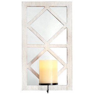 The Lakeside Collection Classic Windowpane Mirror Wall Sconce with LED Candle - Rectangular White