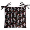 Dancing Skeleton Chair Pad with Ties is cute Halloween decor for your dining room or kitchen. Comfy and colorful cushion stays in place with sturdy ties. Made of: Polyester and polyfill Measurements: 16" sq. Notes: Imported