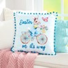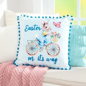 Add a touch of whimsy to your home decor with our Easter Bunny Embroidered Decorative Pillows. These delightful pillows are perfect for spring, offering three charming designs to choose from. The Gnome Bunny pillow features a playful gnome and white bunny surrounded by a blue plaid border, complete with blue tassels on each corner. For a splash of color, Easter on Its Way captures the joy of the season with a whimsical bunny riding a bicycle, an Easter basket in tow, adorned with vibrant pom poms. Lastly, the Bunny Wreath design showcases a brown bunny nestled in a wreath of flowers and eggs, enhanced with poms on each corner for an extra dose of charm. These 18" square pillows are not just decorative but also a conversation starter, bringing a cheerful ambiance to your indoor spaces. With these accent pillows, every room can celebrate the beauty of Spring and the fun of Easter. Whether you're cozying up on the couch or giving your bedroom a seasonal refresh, these pillows offer a simple yet elegant way to elevate your decor. They're a great way to welcome guests and add personality to your home.Key Features:THOUGHTFULLY DESIGNED: Three charming and unique designs to enhance your decor. BOLD AND BEAUTIFUL COLORS: Vibrant hues with playful details that capture the spirit of spring. PERFECT FOR THE SEASON: Ideal for spring and Easter, bringing fresh, festive vibes to your home. A PERSONAL TOUCH: Adds personality and charm to any space effortlessly. MADE FOR INDOORS: Perfectly crafted for indoor use to brighten your living areas. Made of: Polyester and polyfill Measurements: 18" sq. Notes: