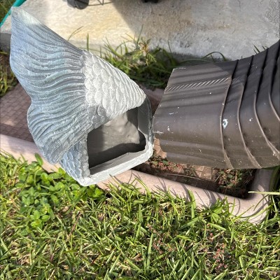 Guests appreciate the whimsical design and functionality of this downspout cover, often noting its ability to enhance curb appeal while effectively directing water away from decks. Many guests find it fits well without needing adjustments, making it a convenient choice for various downspout sizes. The product's aesthetic appeal and solid construction have led to positive experiences, although some guests have encountered sizing issues with specific downspout types.