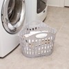 Space-saving Foldable Laundry Hamper is designed for apartments, dorms and wherever space is tight. When it is laundry time, this handy basket can stand upright on its own while you sort and fold clothes. When you're done, fold it flat for storage under a bed or between the washer and dryer. Made of: Polypropylene Measurements: 19-7/8"W x 14"D x 15-1/4"H