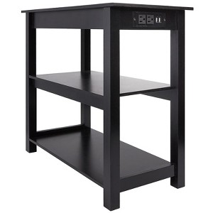 Keep a convenient source of power right next to you with a Functional End Table with Power Outlets. In addition to 2 shelves, it features a power station with 2 USB ports and 2 electrical outlets. Made from: MDF Measurements: 23-1/2”W x 11-3/4”D x 22"H Cord, 116”L Notes: 2 USB charging ports 2 Electrical outlets Assembly required; assembly hardware included