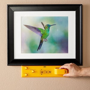 Hang pictures and other items precisely where you want them with this tool. Simply hang an item on the hook, position it on your wall and press the button to mark the spots for up to 2 nails. Bumpers on back of this level tool protect your wall. Has a nonslip handle, level bubble and rulers on both sides. 3-1/2"W x 2"D x 13-1/2"H. Plastic and metal.