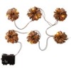 Hang this pumpkin-accent light string in your home for a fun lighted element in your home during the harvest season. Hang it around the home with ease thanks to the battery unit that has a timer on it. Rattan and plastic material. Requires 3 "AA" batteries. Has an attached timer with an on/off switch. Use it inside anywhere or place it outside in a covered location like the patio or porch. For indoor/outdoor use. Strand: 70"L - 6 pumpkins, each with 2 bulbs: 3-1/4" dia. x 1-3/4"H, each.
