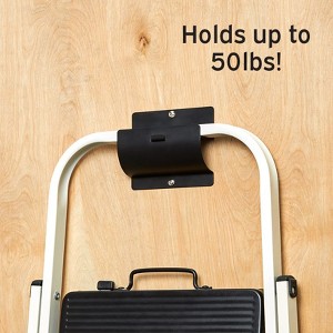 Heavy Duty Hook helps you get bulky items off the floor and organize them with ease. Simply mount it in a garage or on a garden fence or any wall. Holds up to 50 lbs. Great idea for ladders, chairs, wheelbarrows, wagons and more. Made of: Metal Measurements: 5"W x 1-7/8"D x 4-1/8"H Notes: Waterproof and rustproof Easy assembly required; installation hardware included