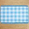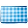 Say hello to springtime with the Hello Spring Bath Rug in your home. It features a blue plaid pattern.