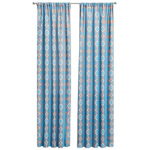 Sold Individually. Upgrade your living room or bedroom with Lake Adventure Window Panels. Blue, orange and white Southwestern print piece is easy to install with rod pockets. Made of: Polyester Measurements: 50"W x 63"L 50"W x 84"L Care: Machine wash and tumble dry Notes: Imported