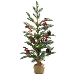 Transform your home into a cozy holiday haven with a Lighted Country Pencil Pine Tree. Charming tree comes adorned with pine cones and red berries, adding a touch of rustic elegance to any indoor space. Whether placed by the fireplace or in an entryway, its built-in fairy lights will illuminate your home with a warm and inviting glow. This delightful tree not only sets the perfect holiday ambiance but also brings a sense of festive joy to your decor. Made of: Polyethylene and metal Measurements: 24" Tree, 13" dia. x 24"H 36" Tree, 14" dia. x 36"H Notes: Requires 2 "AA" batteries Some assembly required; assembly hardware included