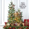 - Perfect for any indoor setting, this tree can be placed by the fireplace or in an entryway, where its built-in fairy lights create a cozy and festive atmosphere.