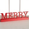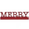 Brighten your home for the holidays with this Merry Tabletop Sign. The red sign will add a pop of color wherever it's placed. Made from: MDF Measurements: 15-1/2"W x 1-3/8"D x 4-1/2"H