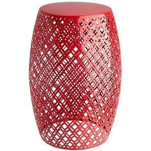 Fun Metal Barrel Stool is a multifunctional piece you'll love. Its vibrant color looks great indoors or on the patio or deck. Use it as extra seating or a stylish side table. Made of: Metal Measurements: 12-1/4" dia. x 18-1/8"H Notes: Weight capacity, 220 lbs.