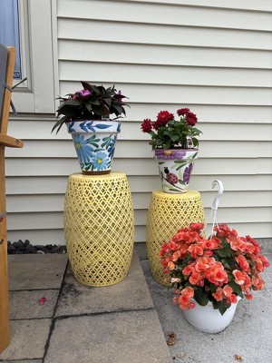 We love our yellow metal stool so much that we ordered 2 more in other colors to use on our patio. It is lightweight, very durable and can be used as a table or a stool when we are entertaining. We are happy to have it/them.