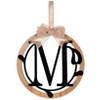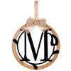 A Monogram Hanging will be a wonderful addition to any wall. It also makes a thoughtful gift! The monogram is encircled by vines and topped with a bow. Arrives ready to display with a ribbon hanger. Made from:Wood, metal and linenMeasurements:. 13-1/2"W x 19-1/2"L Hanging ribbon, 6"L