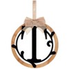 A Monogram Hanging will be a wonderful addition to any wall. It also makes a thoughtful gift! The monogram is encircled by vines and topped with a bow. Arrives ready to display with a ribbon hanger. Made from:Wood, metal and linenMeasurements:. 13-1/2"W x 19-1/2"L Hanging ribbon, 6"L