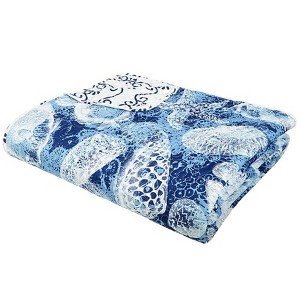 The Niko Quilt Ensemble takes your bedroom on a Mediterranean cruise. Ocean-inspired pieces help you relax in shades of blue and white. The Quilt has a shell print on one side that reverses to wave pattern to give you 2 looks in 1. Coordinate it with the soft and cozy Standard Shams. Finish your room with the whimisical scallop-shaped Seashell Accent Pillow. Full/Queen Quilt Polyester and polyfill 88"W x 92"L Machine washable Imported King Quilt Polyester and polyfill 104"W x 92"L Machine washable Imported Standard Sham Polyester and polyfill 26"W x 20"L Machine washable Imported Seashell Accent Pillow Polyester and polyfill 18"W x 18"L Machine washable Imported