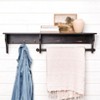 Quilt Rack with Hooks is a handsome way to show off your favorite handcrafted art quilt. Use the removable bar to hang up any blanket up to queen size. Hang additional blankets, jackets, hats and more on the 3 hooks. A shelf on the top provides room for decor accents, books or plants. Made of: MDF and wood Measurements: 39"W x 7"D x 9"H Notes: Some assembly required; assembly hardware included