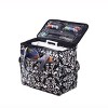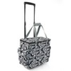- Spacious rolling tote designed to easily transport sewing supplies and small projects.