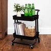 Rolling Storage Cart helps keep almost any room organized. Use it in the kitchen, office, bedroom and more. Two levels of storage provide plenty of space for everything you need, while easy-roll wheels let you take it all wherever you need it. Includes 2 clip-on bins for small items. Made of: Polypropylene and steel Measurements: 17"W x 14-1/2"D x 22-7/8"H Notes: Some assembly required; assembly hardware included