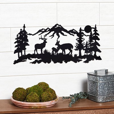 Scenic Woodland Accent Light is a touch of the wild you can put anywhere in your home. A soft light glows behind the silhouette of a wilderness scene with an iconic American animal. Wireless light can go in the living room, a hallway or even the bedroom. Made of: Metal and PVC Measurements: 4-1/2" sq. x 8-1/2"H Notes: Requires 2 "AAA" batteries