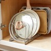 Sliding Storage Rack makes it easy to access your pots and pans and their lids when you need them. Put it in any cabinet to save you space in the kitchen and time while you cook. Adjustable inserts allow you to personalize the rack for your needs. Easy installation--no drilling required. Made of: Metal Measurements: 11-7/8"W x 7"D x 7"H
