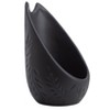 Upright Spoon Rest is a decorative way to keep your counters neat. Vertical design keeps the spoon from dripping on the stovetop while you work. A notch in the top keeps a spoons, spatuals, ladles and more in place. Embossed floral design gives it a lovely touch. Made of: Earthenware Measurements: 4" dia. x 6-2/3"H